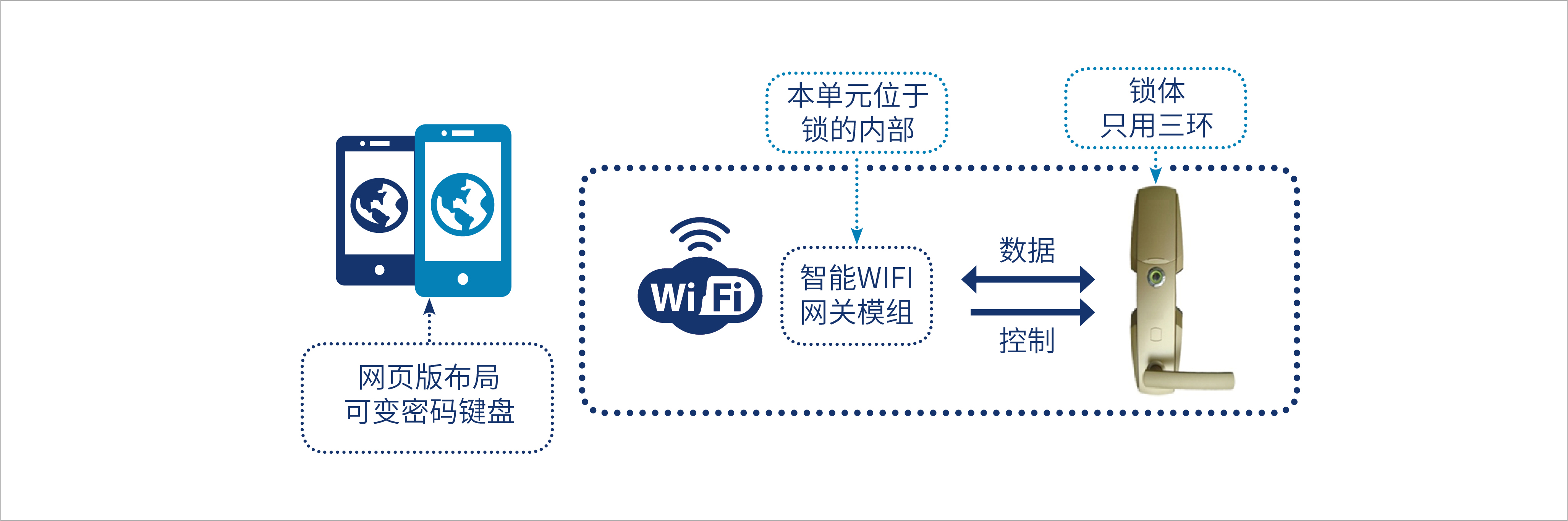 在本產品的使用中,您無需另外配置無線網關器,無線網關模組在鎖體中實現控制功能與無線上網功能;與電子鎖配套的集群 管理系統(tǒng),使用方可以獲取每一把電子鎖的管理權限和狀態(tài)數據;電子鎖的開啟與閉合狀態(tài)實時的顯示在后臺管理系統(tǒng)上;通過 前臺實現開鎖授權與退房制約管理,客人與前臺可以實現遠程電子登記入住。